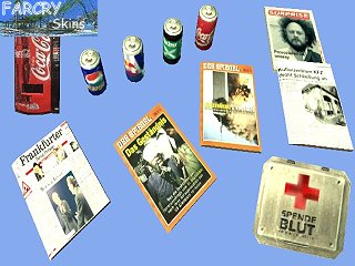 Enthalten sind au?erdem neue Skins fuer den Getr?nkeautomat (COCA-COLA), die Getr?nke Dosen (COCA-COLA, RED-BULL, Pepsi und Licher X2), neue deutsche Zeitschriften (DerSpiegel und Die FrankfurterAllgemeine u.s.w.), ein neues Medikit, sowie ein neuer Messer Skin.