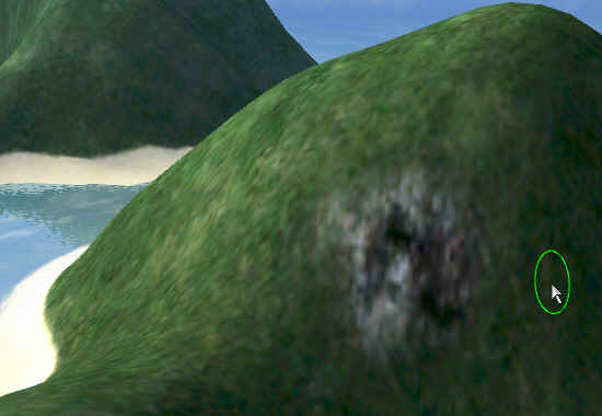 Wir waehlen unseren [Felsen] aus und 'bemalen' nun unseren Berg etwas damit (Achtung: beim ersten Mouseklick wir kurz geladen!) :