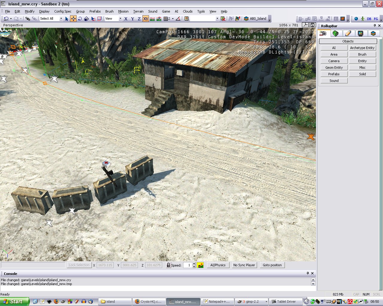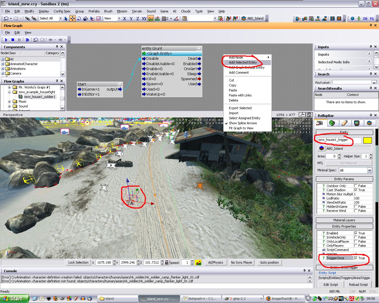 Jetzt könnt ihr den [Flow Graph] erstmal schließen. Denn nun erstellen wir einen Trigger, also Auslöser der den Koreaner aus dem Haus rennen lassen wird, wo er dann das Geschütz benutzt.