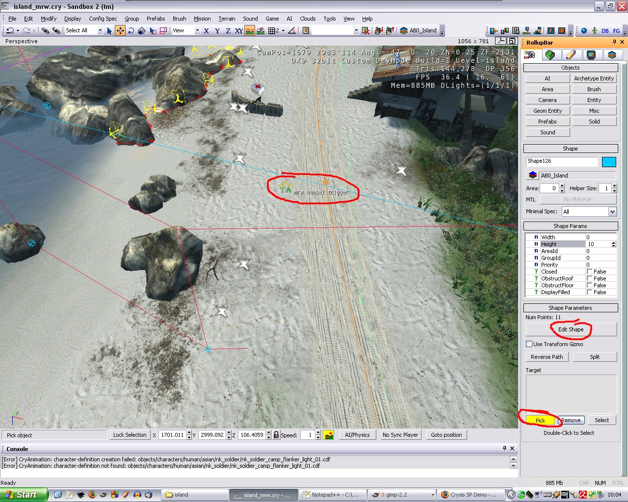 A pro pos [AreaTrigger] auslösen: Das passiert noch gar nicht! Also erstellen wir eine Shape: