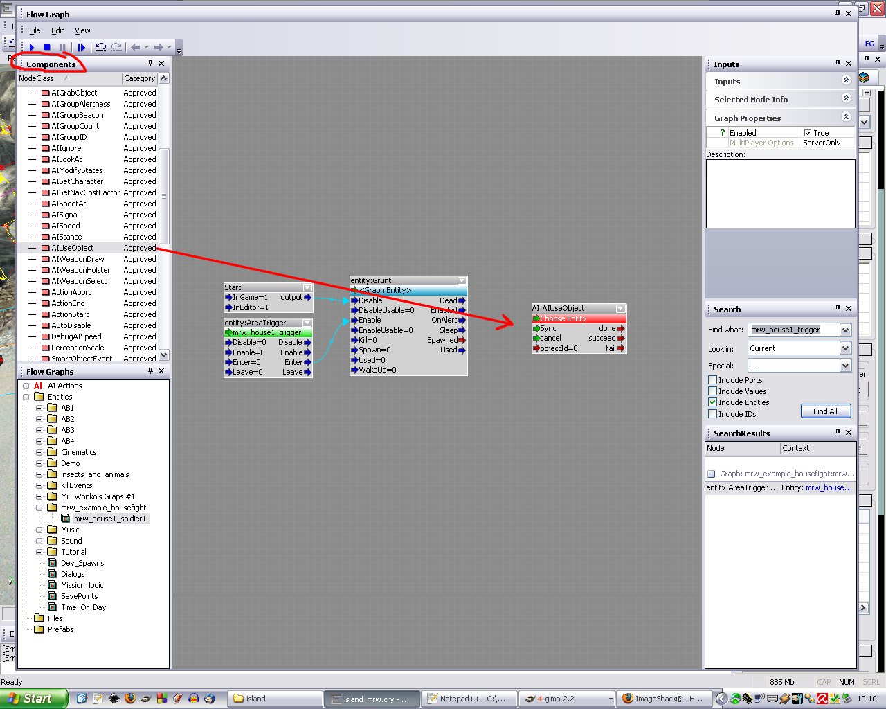Alternativ zur Rechtsklick-Methode könnt ihr die Befehle auch links aus dem [Components] Fenster in euren [Flow Graph] ziehen. Benutzt eine der beiden Methoden, um ein [AIUseObject] hinzuzufügen.