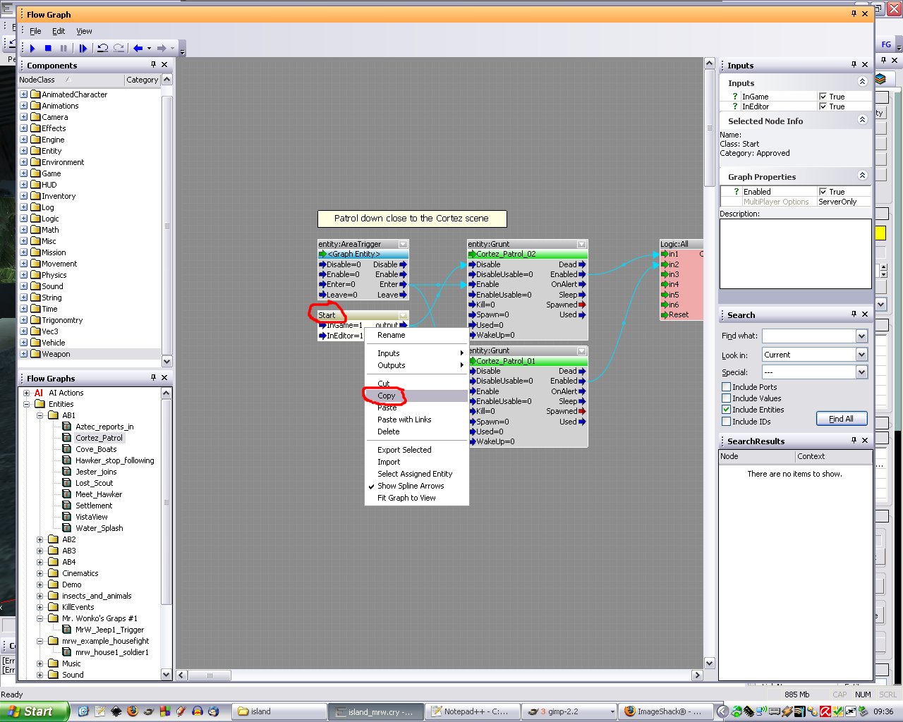 Nun brauchen wir ein einen [Start], ich weiß leider nicht genau, wie ihr das selber erstellt, aber macht's doch wie ich und kopiert es aus [Entities/AB1/Cortez_Patrol] (Die Auswahlliste ist links unten und mit [Flow Graphs] betitelt, im [cortez_patrol] findet ihr [Start] oben links)