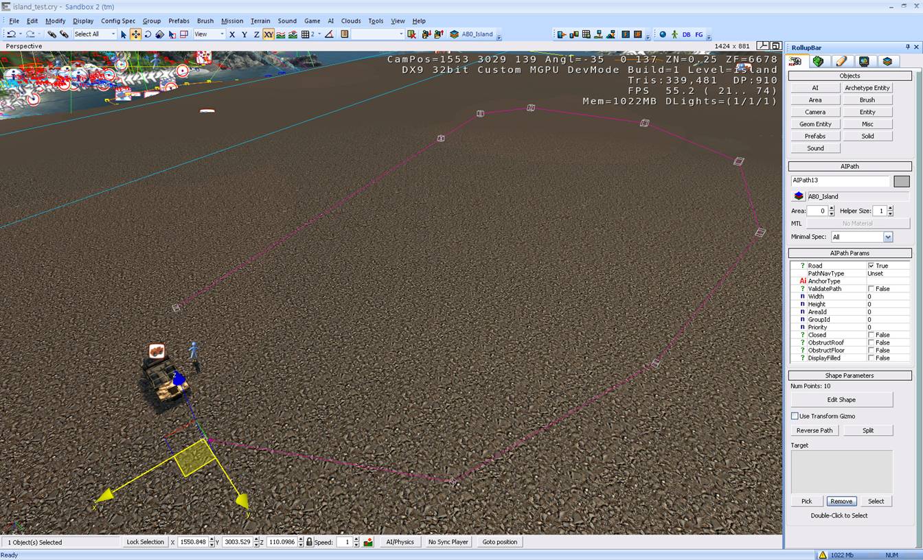 So, nun mit [STRG+G] ins Spiel gehen und sehen, wie unser Grunt in das Fahrzeug einsteigt und dem Pfad (Path) folgt. Tutorial von "Kampf-Torte".