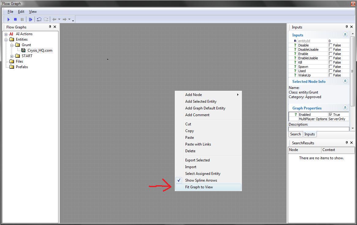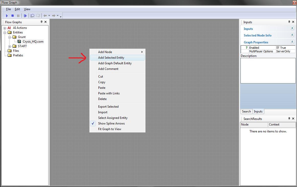 Nun im FlowGraph Fenster Rechtsklick auf den fünften EntityPos und wählt wieder [Assign Selected Entity]