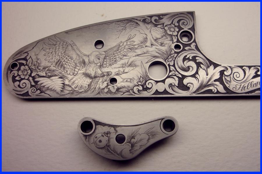 Ich habe mal wieder was graviert. Diesmal ein Messer (rohling) für meinen Vater. Das Eichenlaub ist komplett modelliert. Der Verlauf sieht sicher nicht natürlich aus, ich wollte es mehr als geschwungenes Ornament.